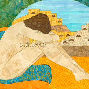 In 2016, I started doing figure drawing. I really enjoy the challenge of drawing live models. I discovered using used tea bags were perfect for depicting skin. I also started to use different thicknesses of embroidery thread as outlines.